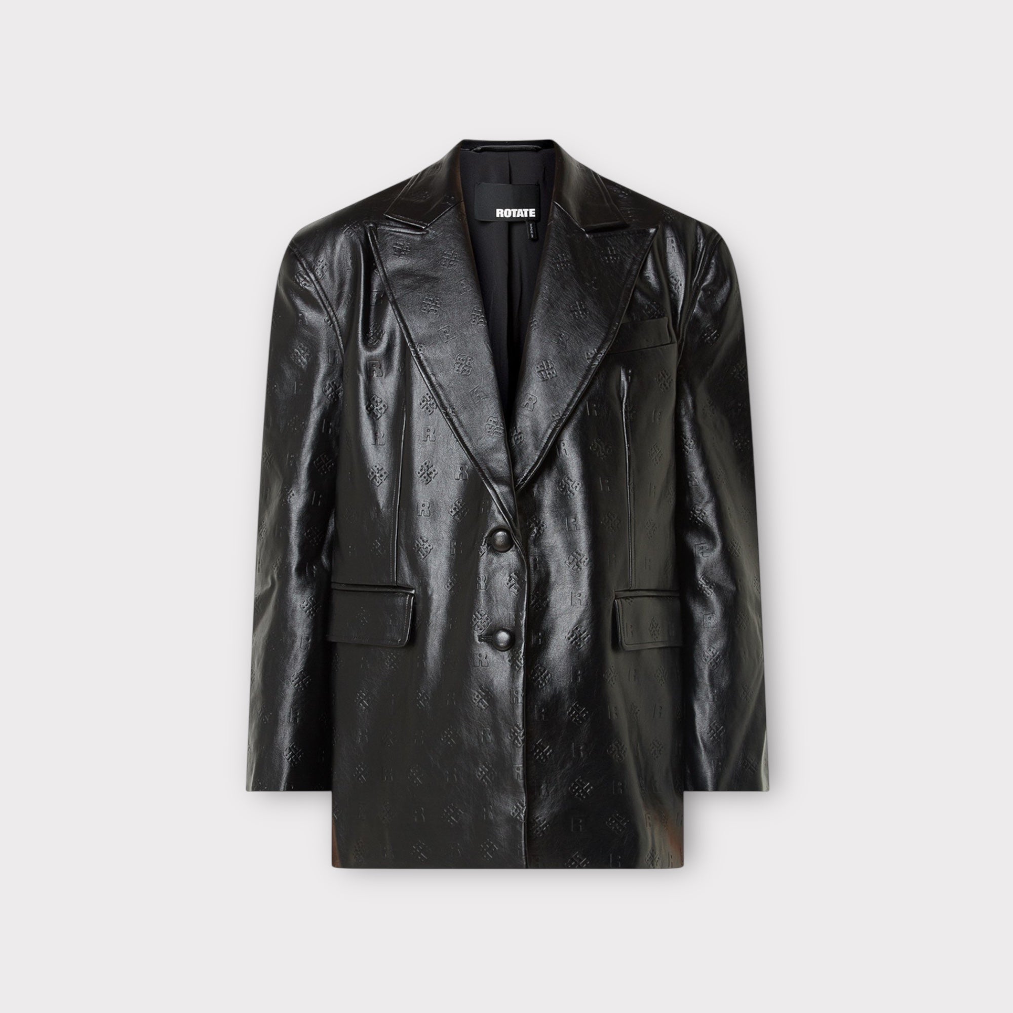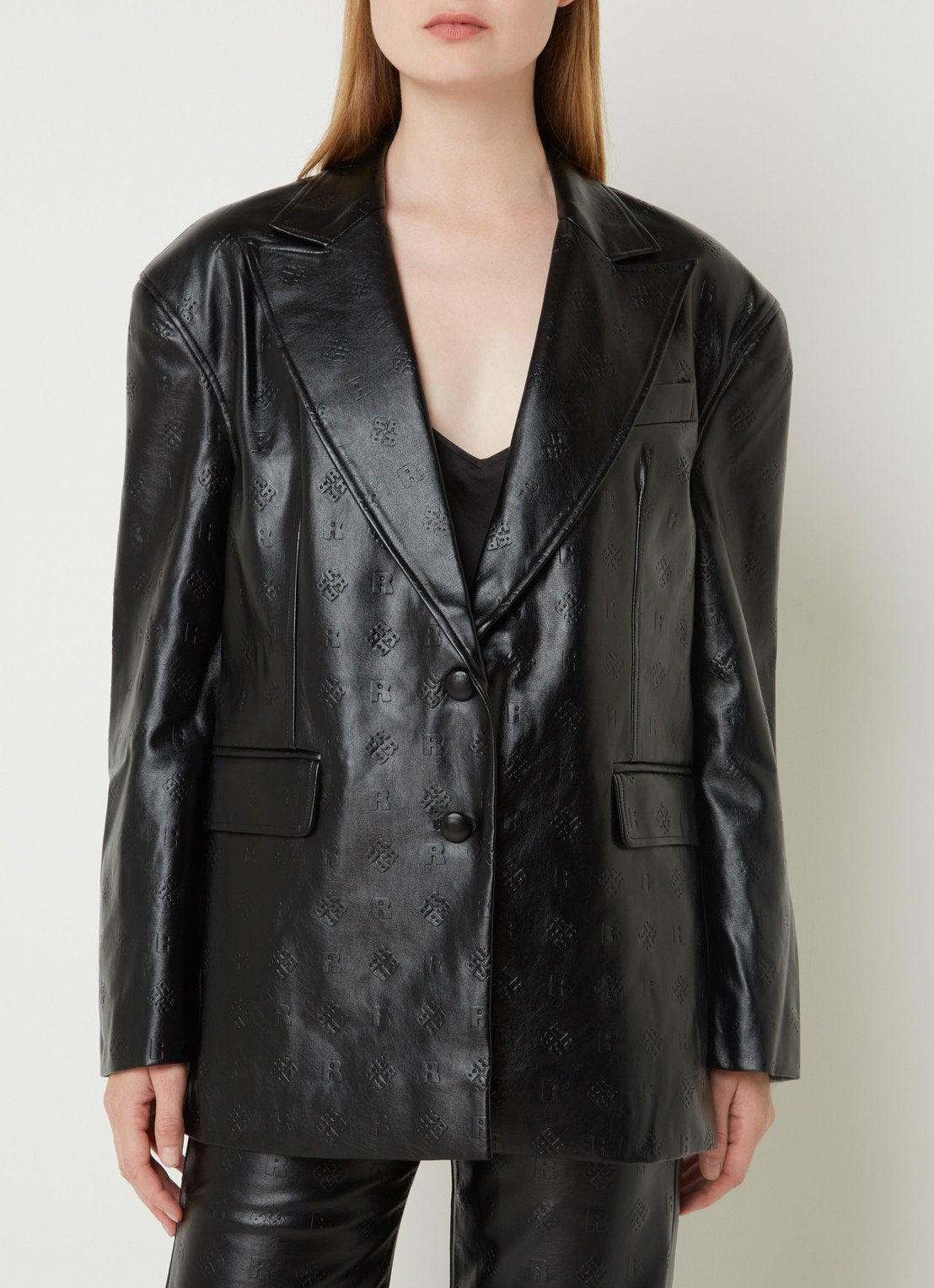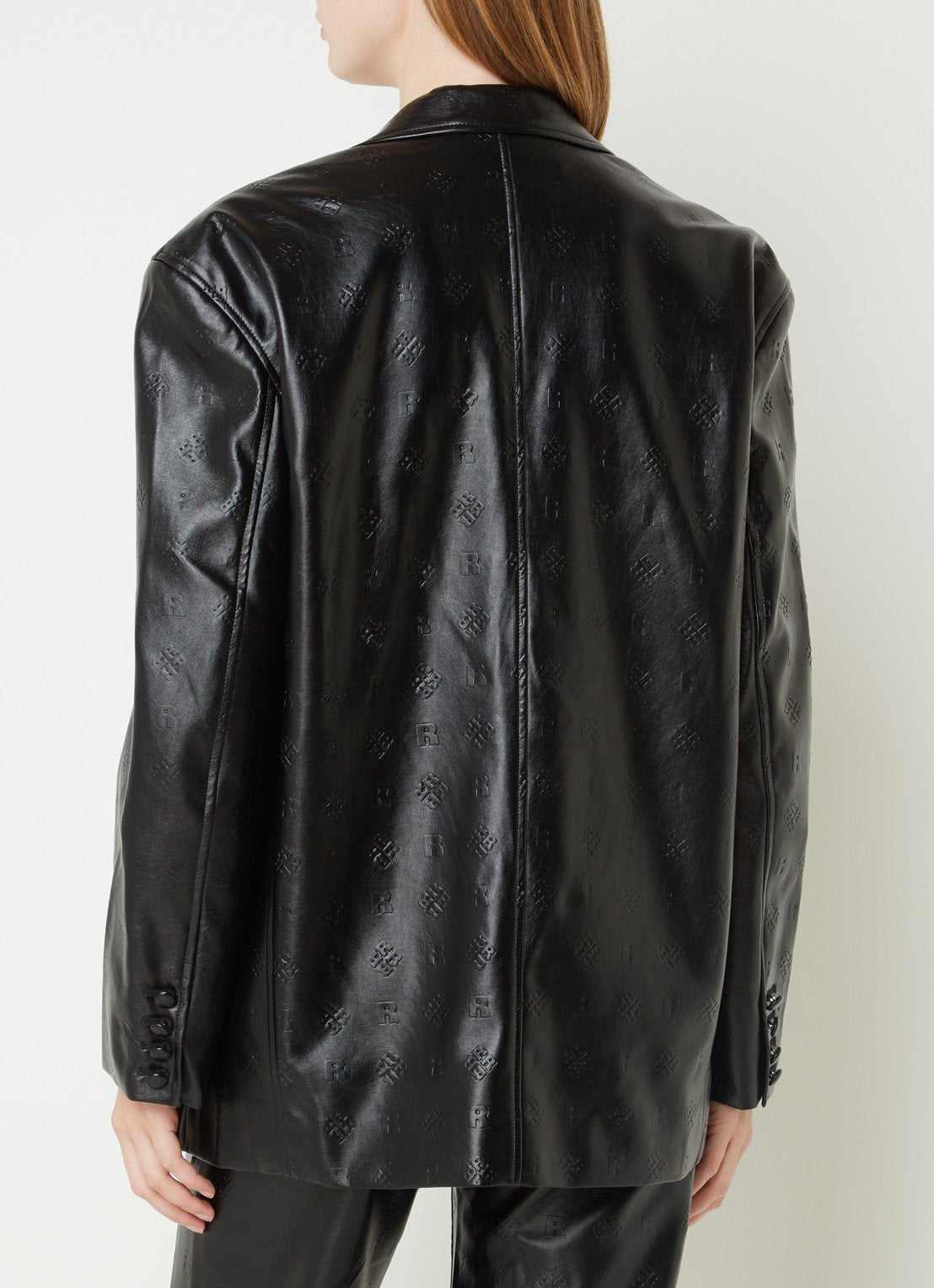 Oversized blazer van imitatie leer met logo, lange mouwen, een kraag, 2 buitenzakken en 1 binnenzak.