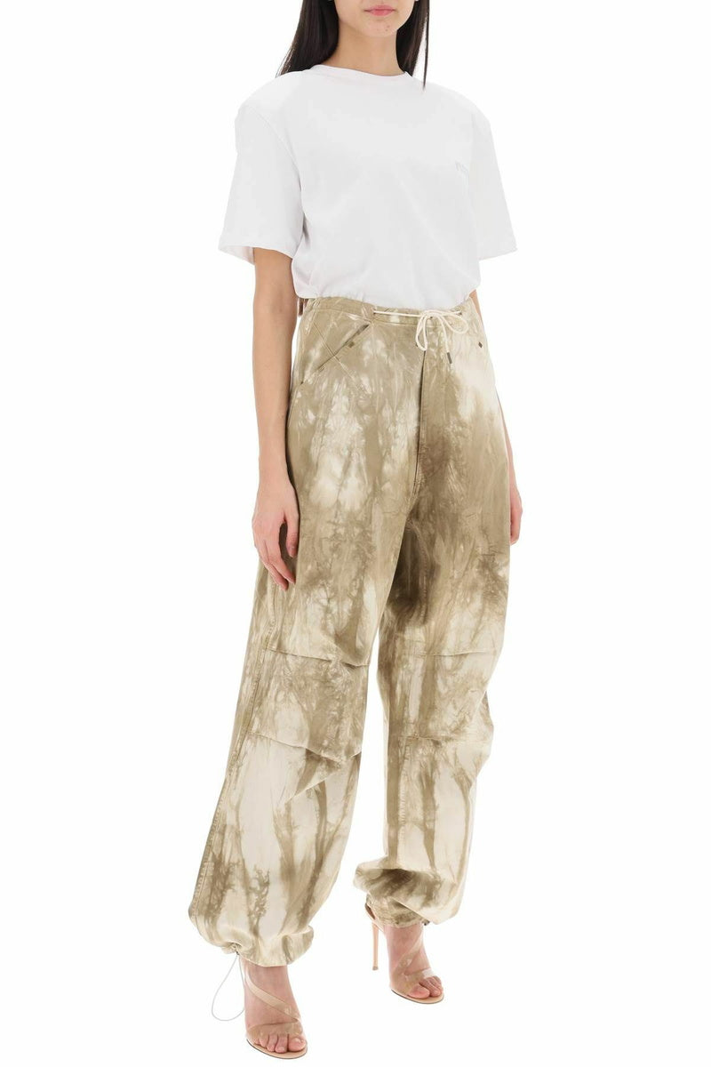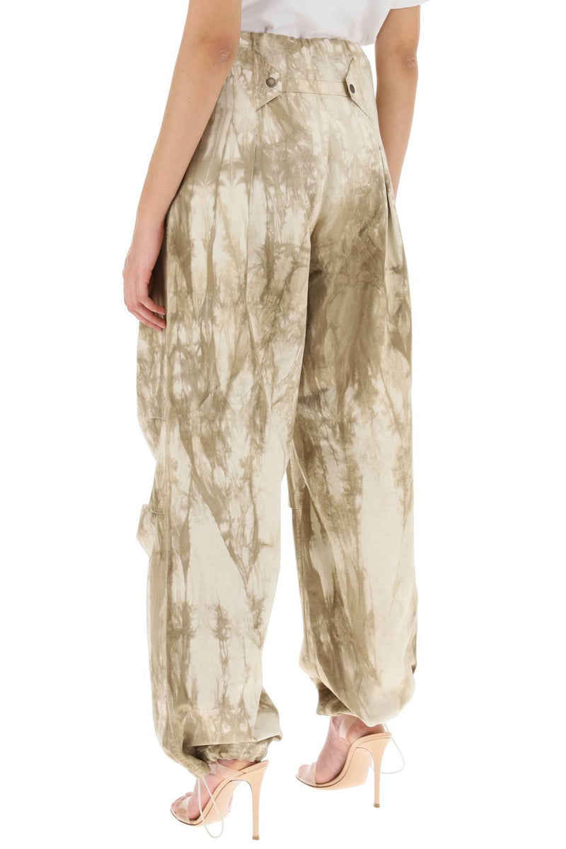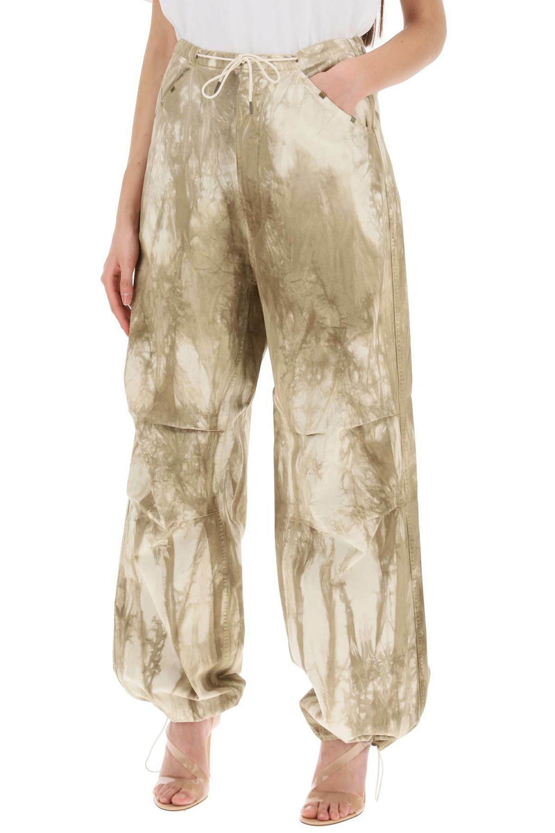 Tie-die motief broek met verstelbare tailleband, steekzakken, verstelbare elastieke onderkant, high rise en een baggy/loose fit.