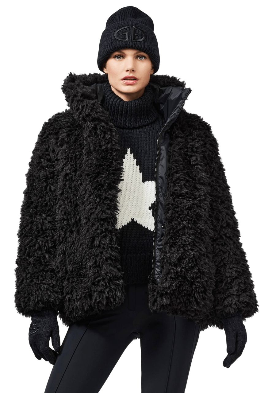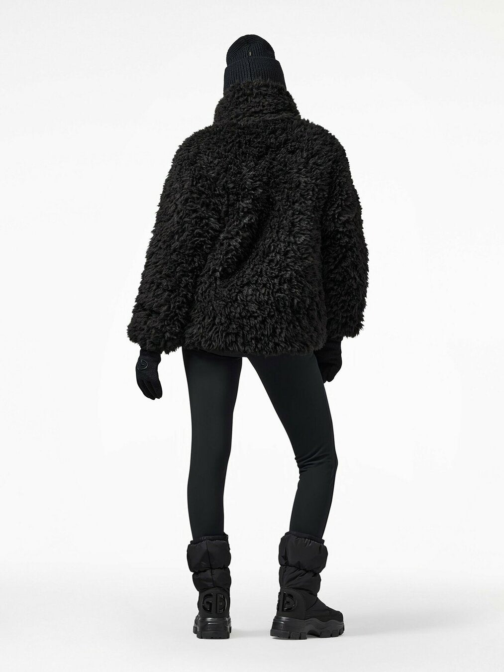 Zwarte teddy oversized jas met lange mouwen, steekzakken, aantreklussen, een rits sluiting en is volledig gevoerd.
