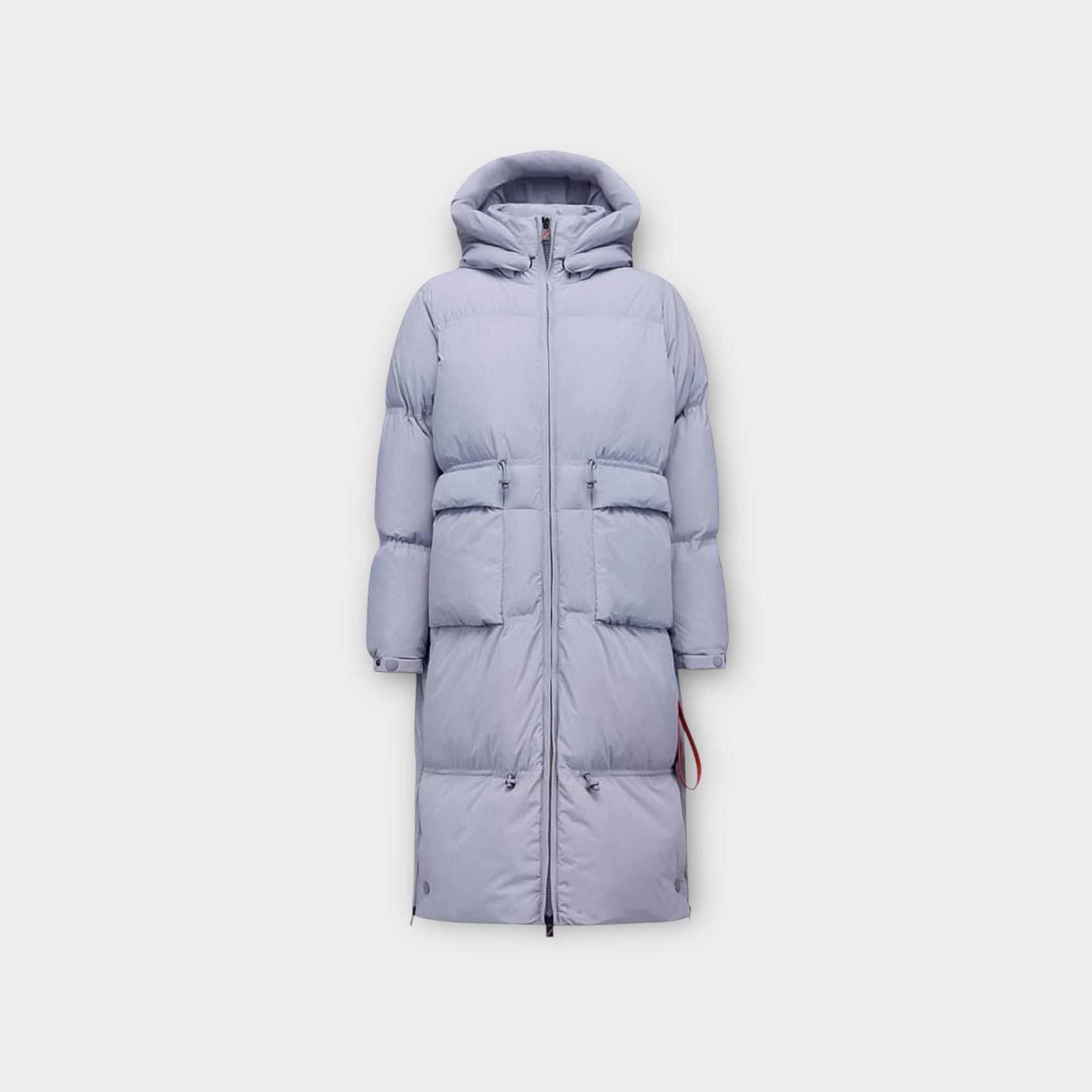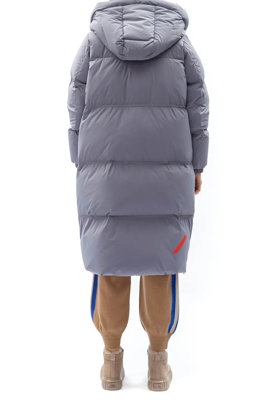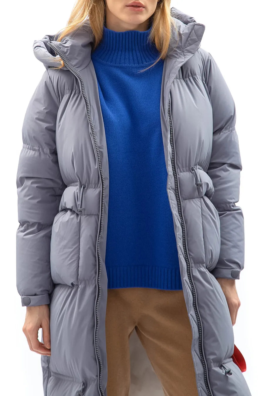 Gewatteerde halflange jas met dons, lange mouwen, een rits sluiting, los te maken capuchon, zakken en ritsen aan de zijkant.