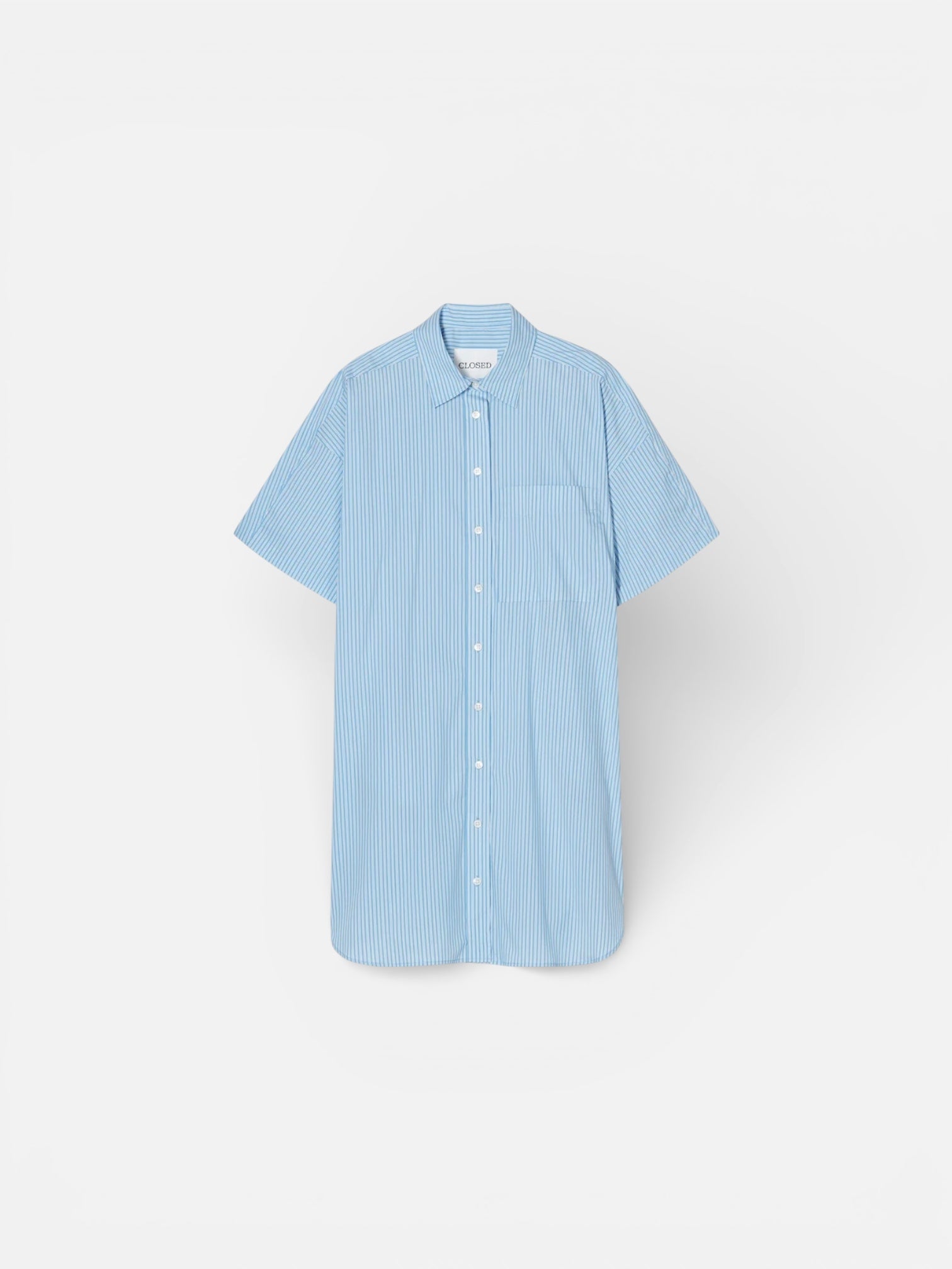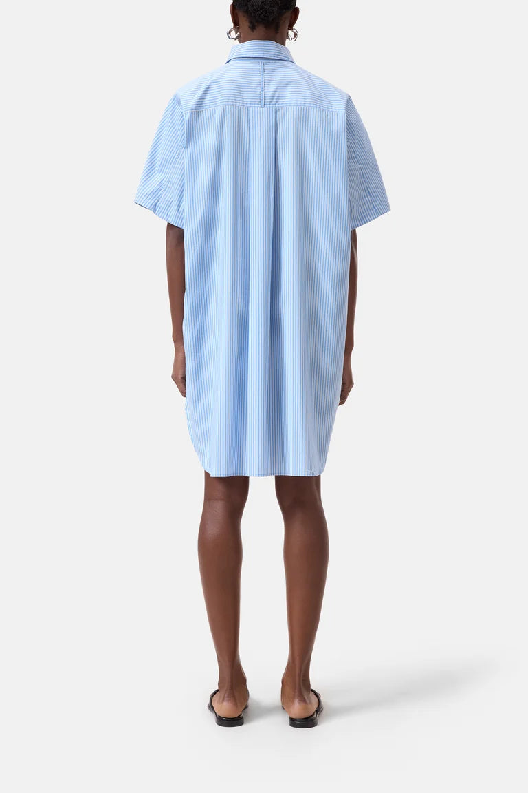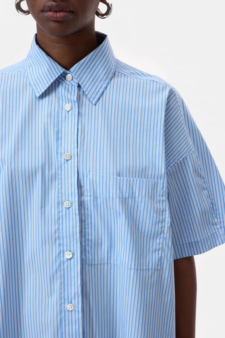 Katoenen gestreepte overhemdjurk met korte mouwtjes, zijzakken en een knoopsluiting.
