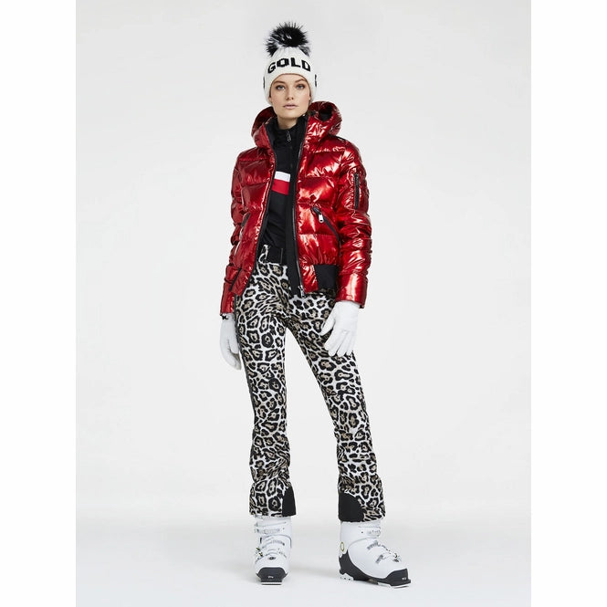 Leopard skibroek met bijpassende riem, slim fit en is water afstotend.
