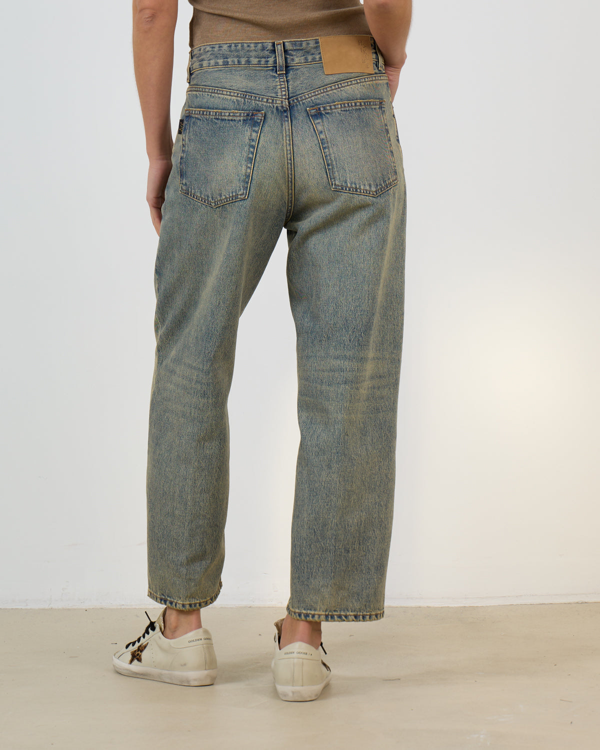 Wide leg jeans met een korte relaxte fit, high waist, vintage wassing, en 5 pocket.