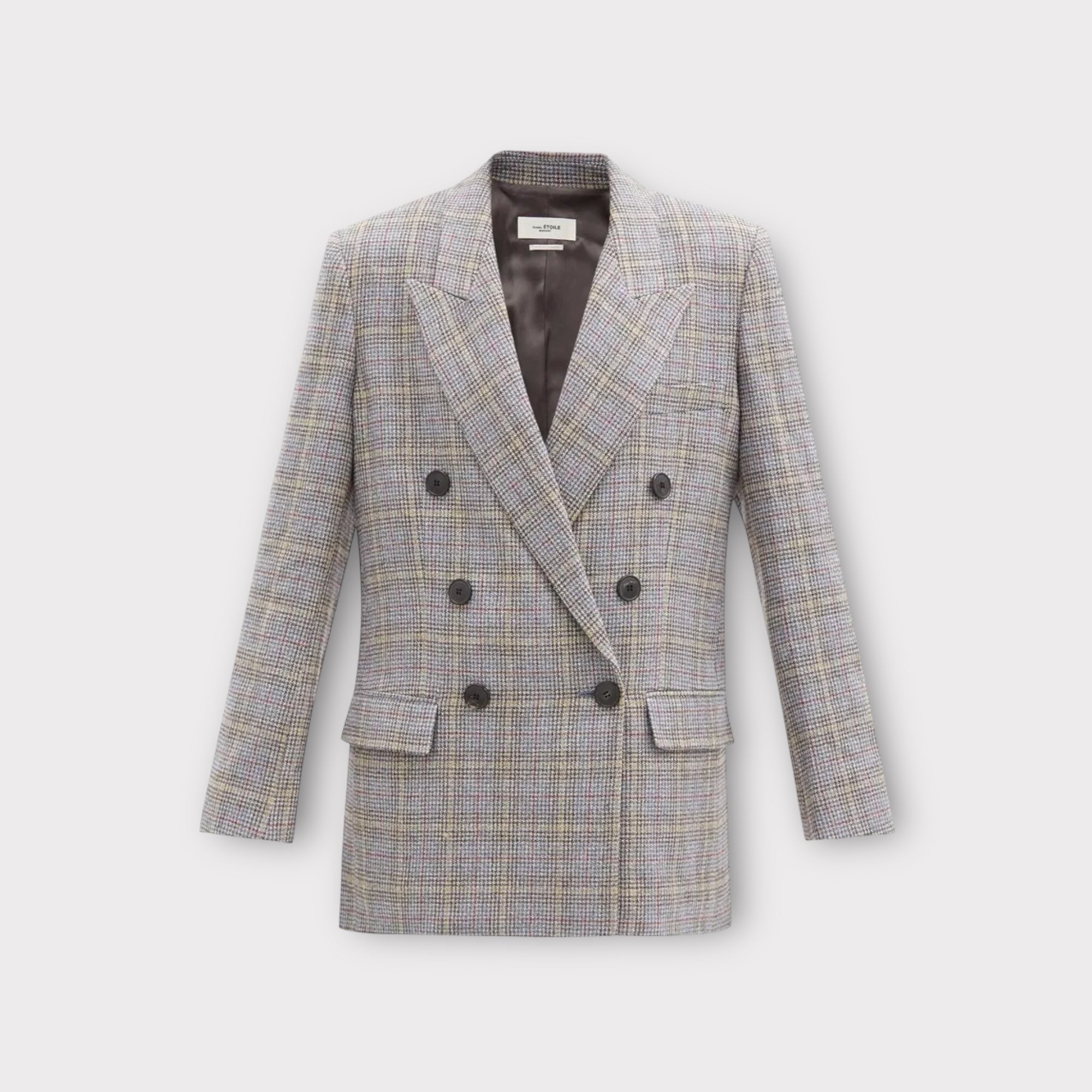 Geruite blazer met een double breasted sluiting, schoudervulling, lange mouwen en een rechte fit.