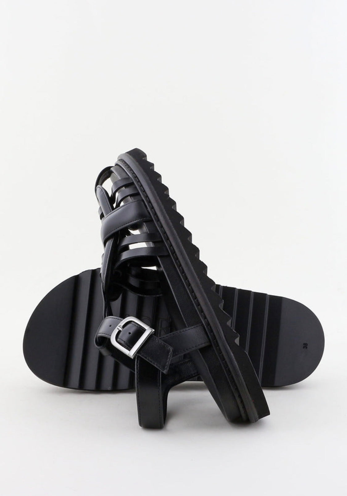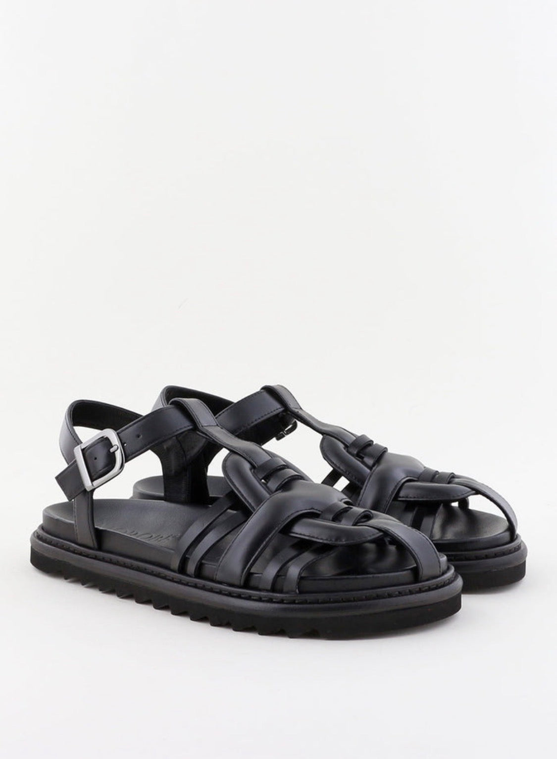 Zwarte leren sandaal met een riempje en normale pasvorm.