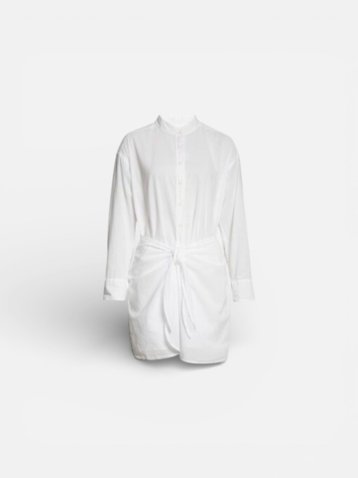 Witte korte jurk met lange mouwen, knoopjes, wrap-detail aan de voorkant en een  knoopsluiting.