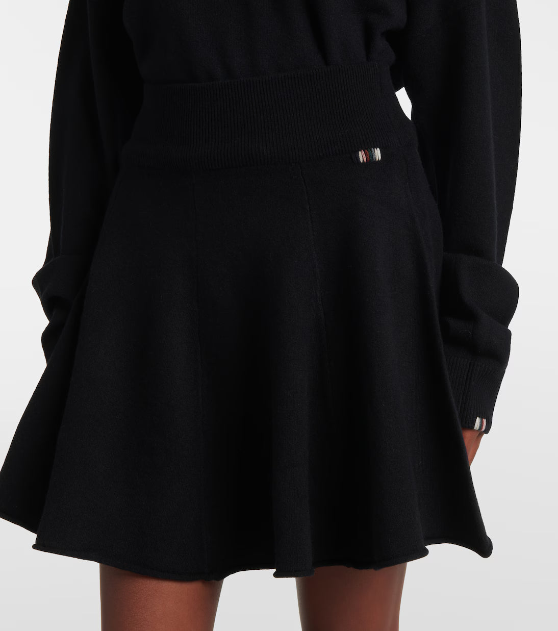 Zwarte minirok met een elastische taille en stretchy materiaal in een cashmere blend. One size fits all.