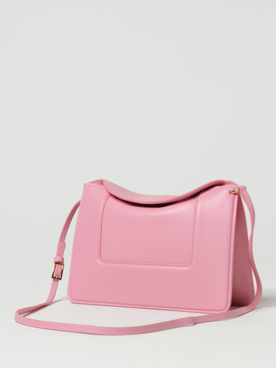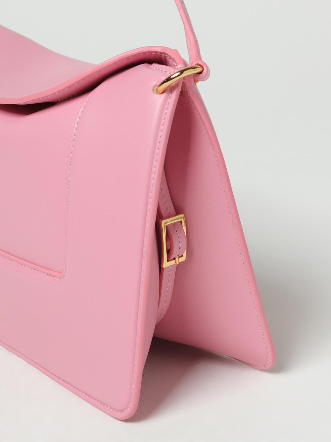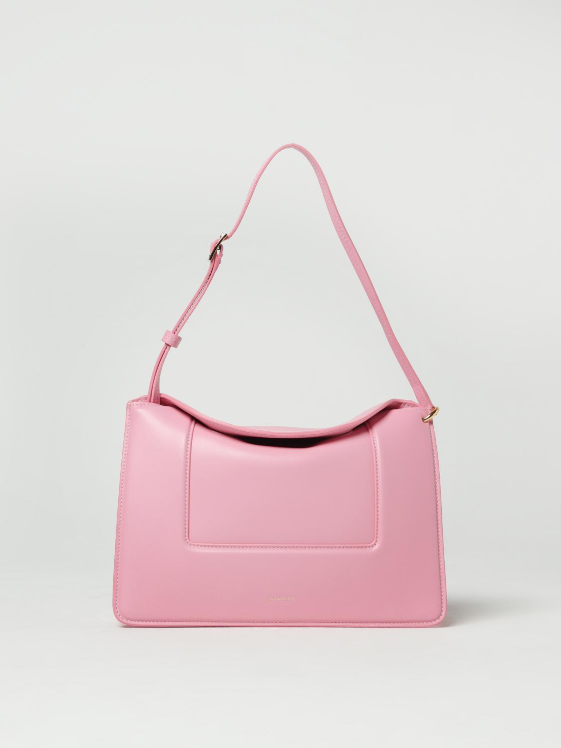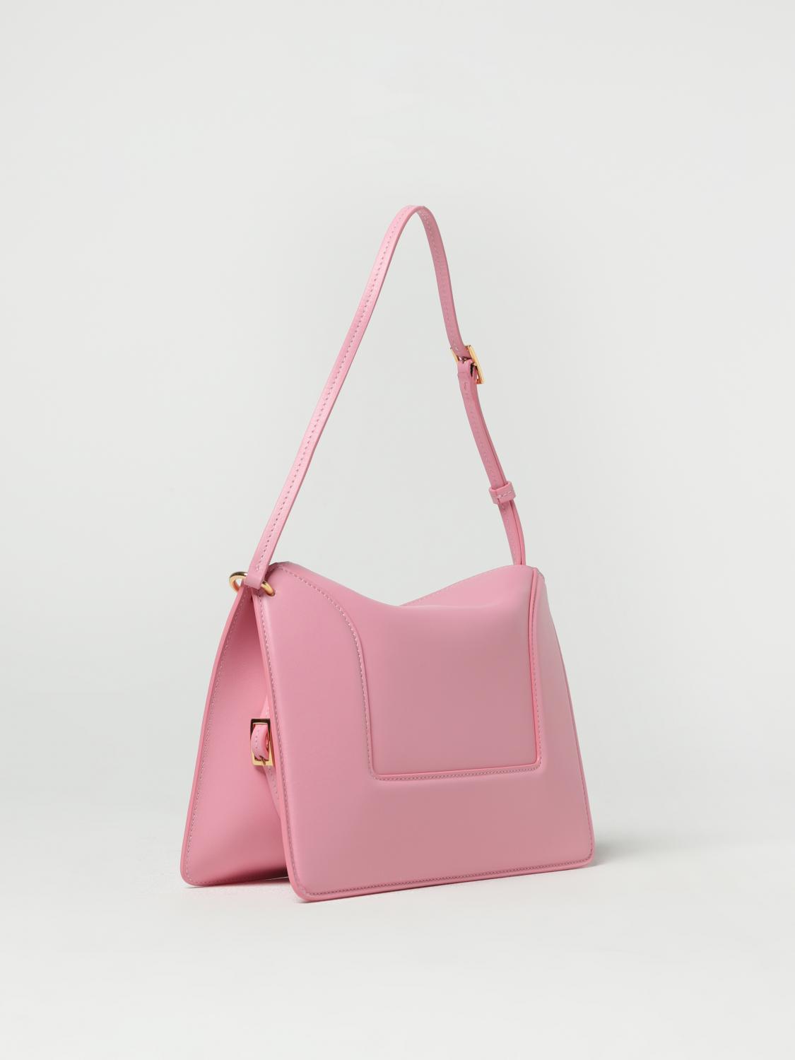 Roze Penelope schouder/crossbody/hand tas van zacht kalfsleer, een klep sluiting en verstelbare strap.