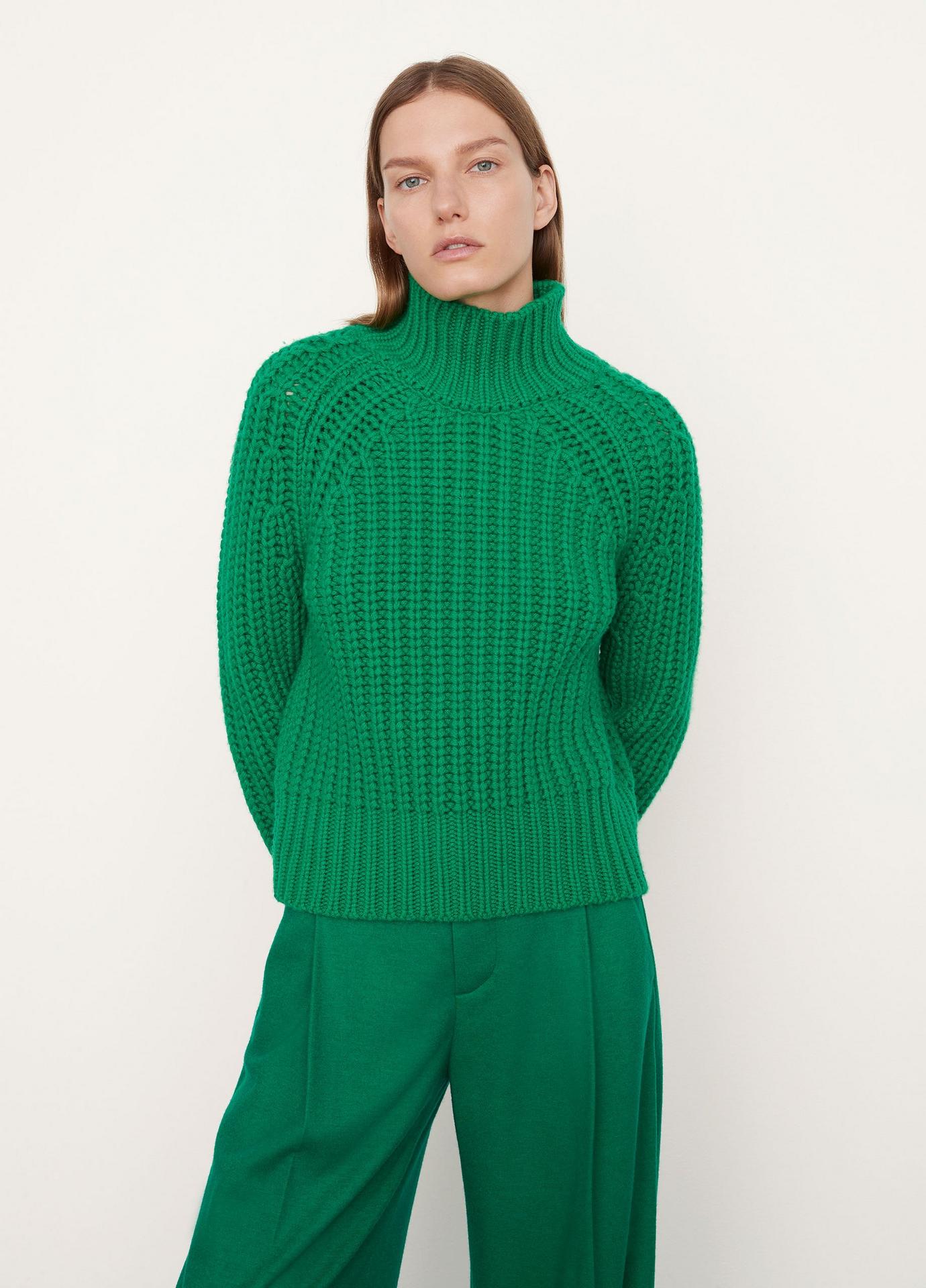 Wol en cashmere grof gebreide trui met een turtleneck en lange mouwen.